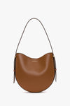 Meticulously crafted in Italy from smooth shiny calf leather, the Medium Dia Hobo Bag in Tan has a sophistication that is rooted in practical and polished design codes. With its softly rounded silhouette and gold cufflink hardware, it marries masculine and feminine viewpoints beautifully. A magnetic closure and small internal slip pocket allow for secure storage while the house’s signature gold branding, including a Victoria Beckham logo and unique serial code inside the bag, add an elevated point of difference.