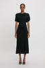 Reimagined in universally appealing Black, this elegant Gathered Waist Midi Dress has a gathered front, tulip sleeve detail and slight V-neck at the back. Immaculately cut to accentuate the waist in a classic fit-and-flare silhouette, the Gathered Waist Midi Dress...