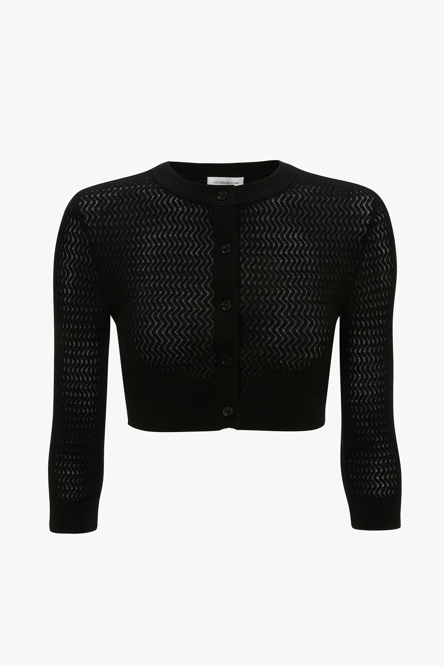 Unapologetically feminine, the Cropped Sleeve Cardigan has a figure-flattering silhouette and an attractive textured zig zag stitch. Ribbed trims at the cuffs and hemline add further tactility and a traditional button-front placket completes the look.