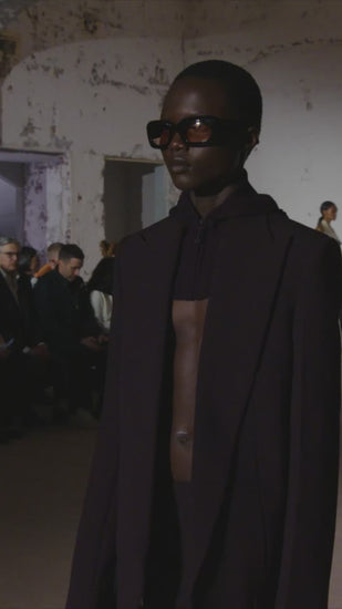 Traditional tailoring is redefined with an extended sleeve length in the Dropped Lapel Jacket. Presented in a luxurious shade of Deep Mahogany, it has a three-hole button at each cuff with a contrasting red stitch, centre back vent and concealed front button fastening. Meticulously crafted from a double wool crepe and fully lined, it marries classic design codes with a contemporary viewpoint.