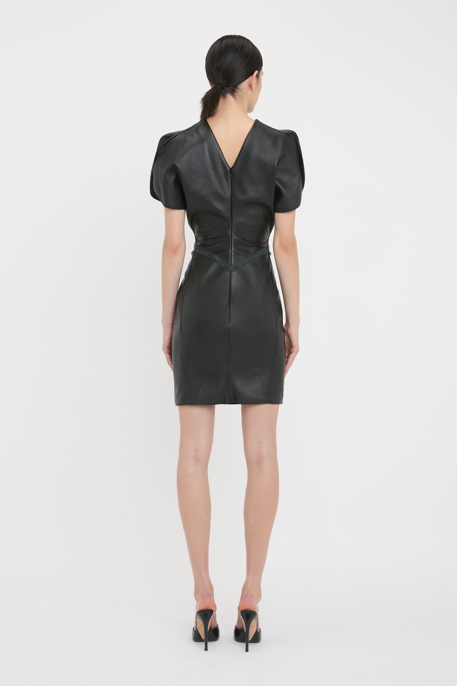Reimagined in utilitarian leather, the Gathered Waist Mini Dress is given a directional refresh for SS25. Crafted from tactile nappa leather, it has a flattering pleat detail at the front waist and V-shaped seam at the back. The mini hemline brings a flirtatious finish, reflecting the house’s playful personality.