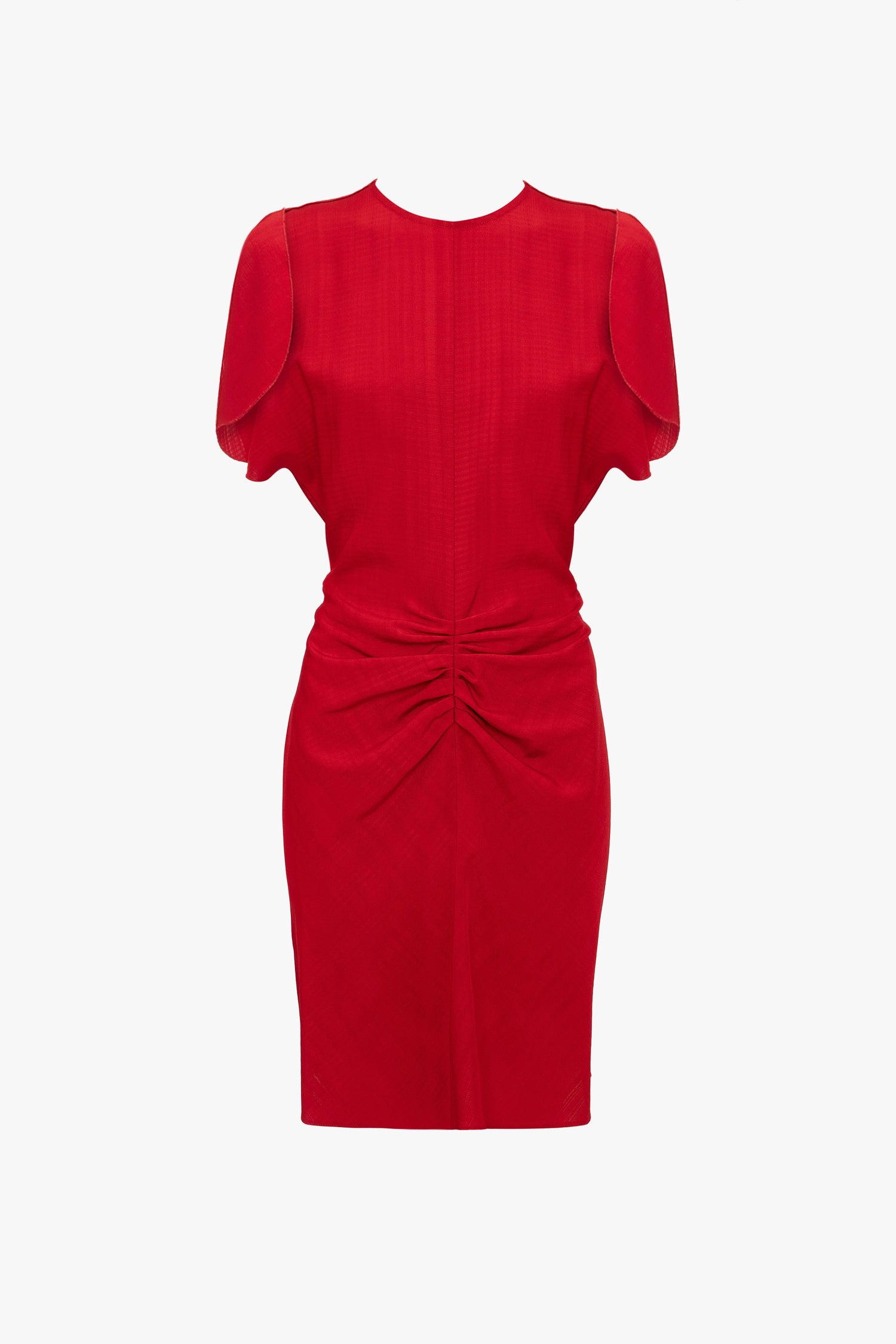 Polished and playful, the Gathered Waist Mini Dress in exclusive carmine hugs the hips and waist for a figure-flattering silhouette. The short hemline, pleat detailing at the waist and teasing tulip sleeves add a coquettishness that speaks to the brand’s humorous side. Exposed seams add a sophisticated edge.