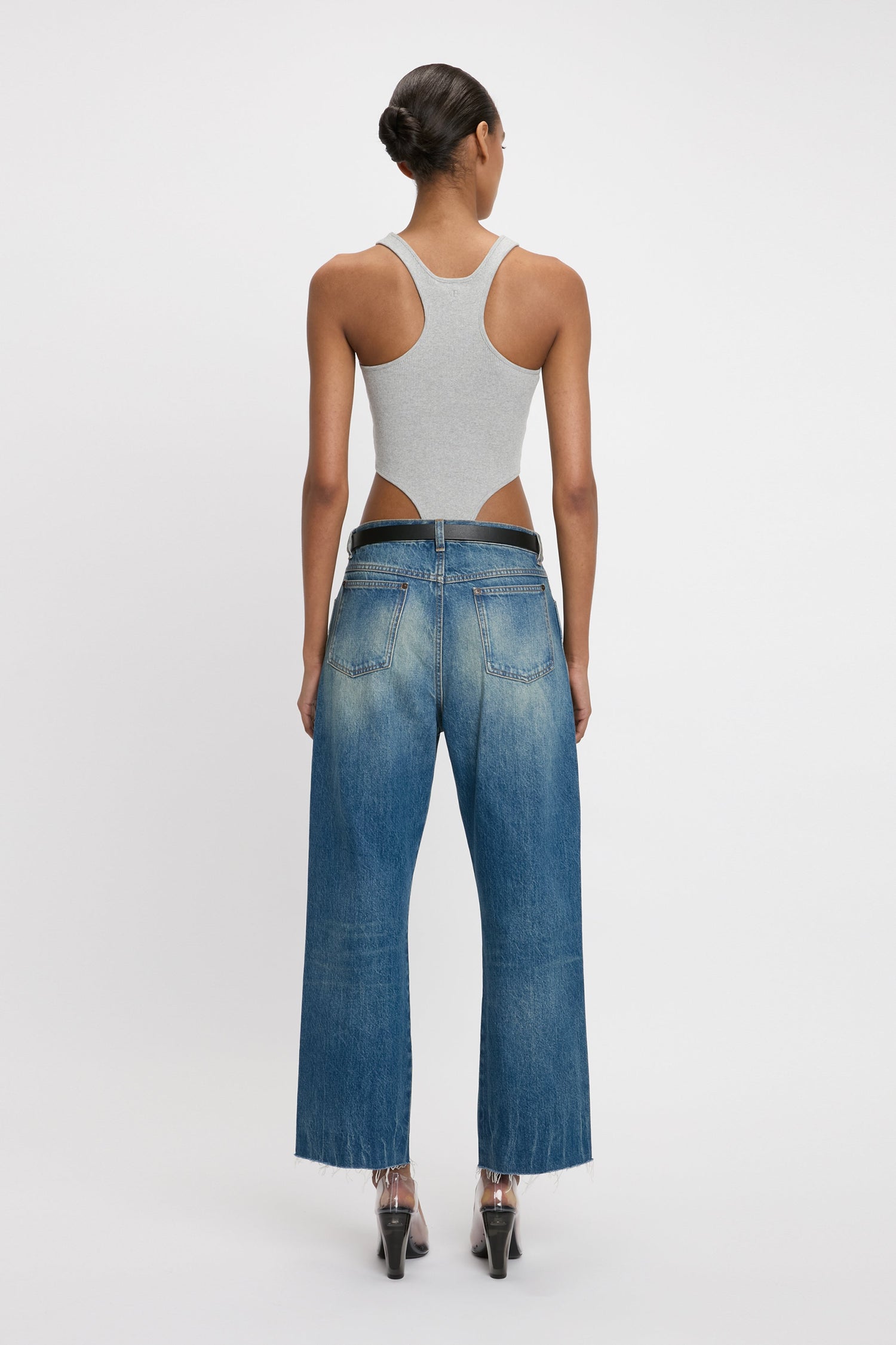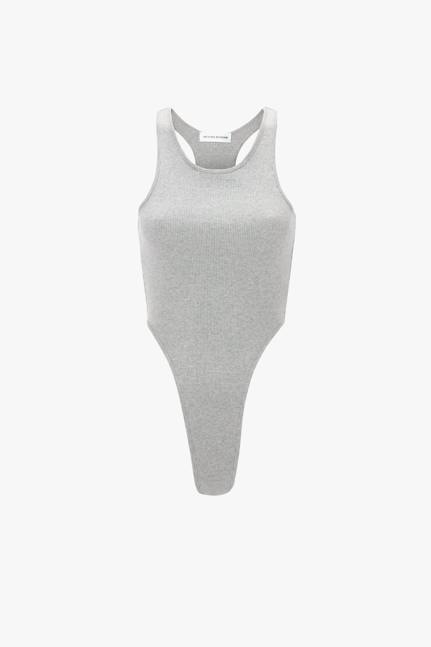 Unapologetically sexy, the High Leg Body Bodysuit has a dramatic high-cut leg, scoop neckline and racerback finish. Crafted from a compact ribbed jersey for a body-hugging silhouette, it has adjustable clasp closures for comfort and a tonal Victoria Beckham logo at the back of the neck. Presented in versatile Grey Marl, it is a foundational piece for any wardrobe.