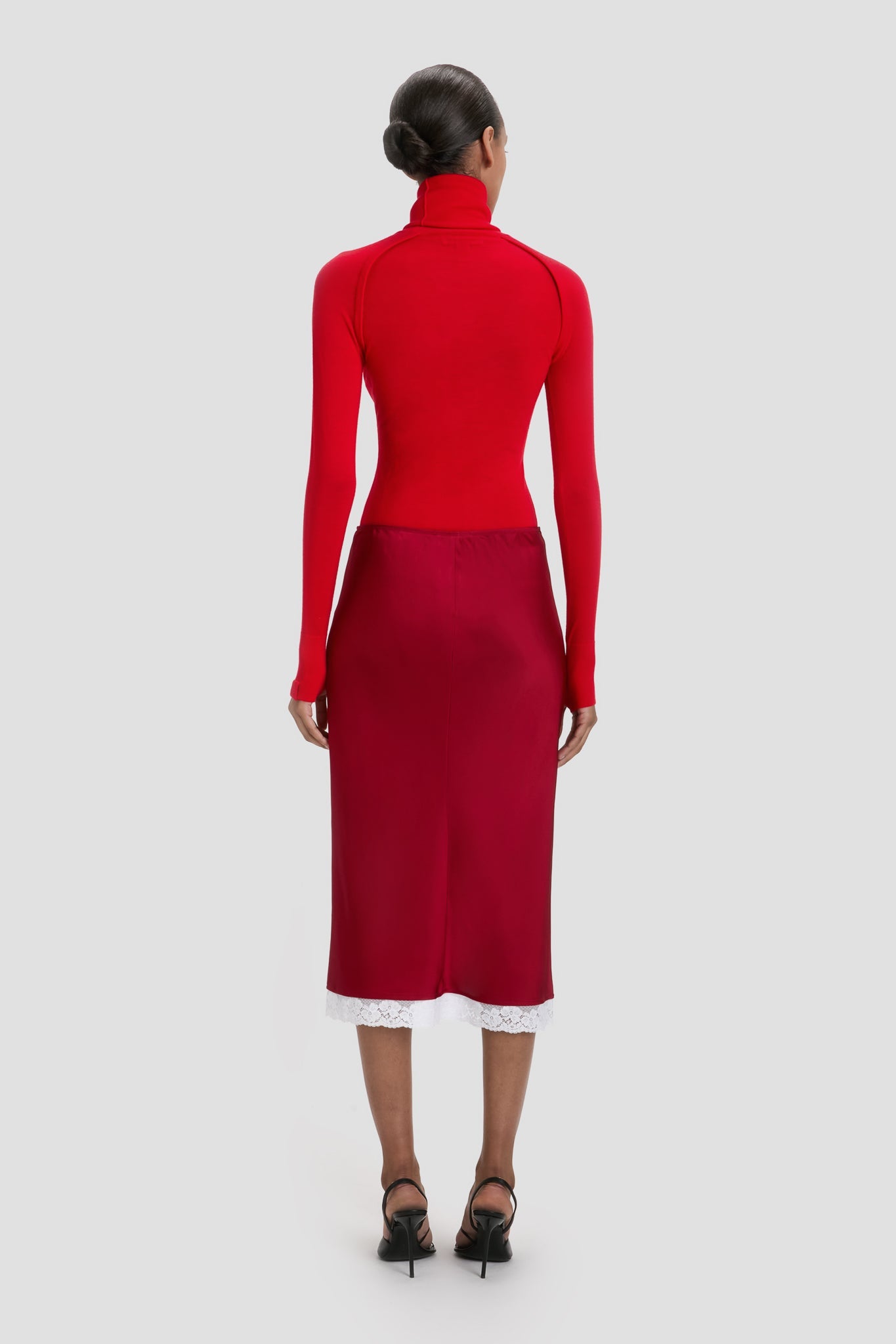 A vibrant Bright Rose colourway brings an energetic point of view to the High Neck Top. Crafted from tactile 100% merino wool, it has a slender cut, high neck design and long sleeves with thumb holes. Ribbed trims along raglan shoulders bring definition to the silhouette and a branded embroidered tab at the cuff adds an elevated point of difference.