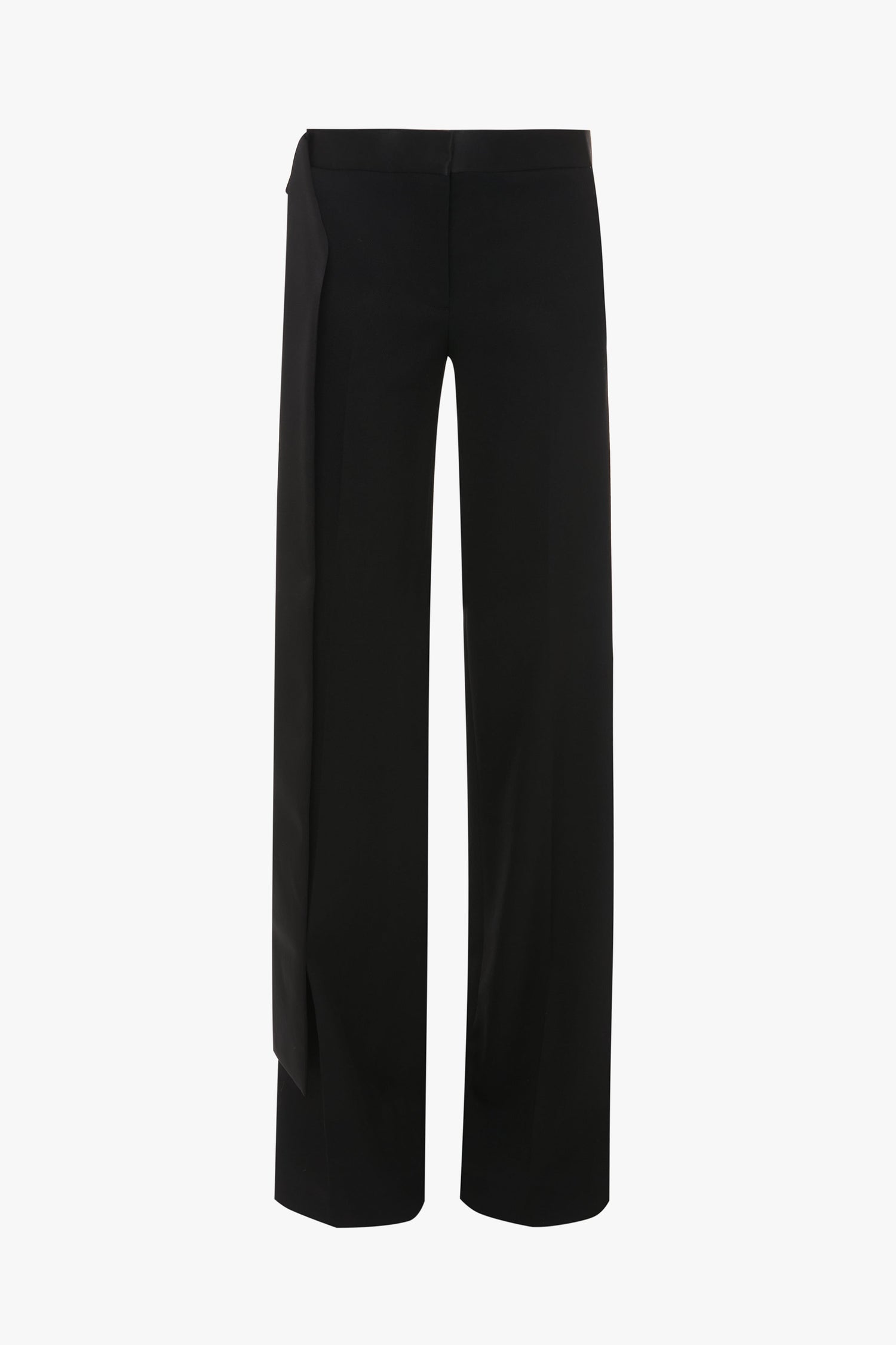 New to the Victoria Beckham tailoring edit, the Satin Waistband Trouser in Black marries masculine and feminine beautifully. Immaculately tailored with a contrasting satin waistband resonant of tuxedo style, the Satin Waistband Trouser is imbued with an elegant satin side tie that falls flamboyantly to midi length. A highlight of Victoria’s for SS25, these wear-anywhere trousers are finished with slanted front pockets and back pockets with satin welts.