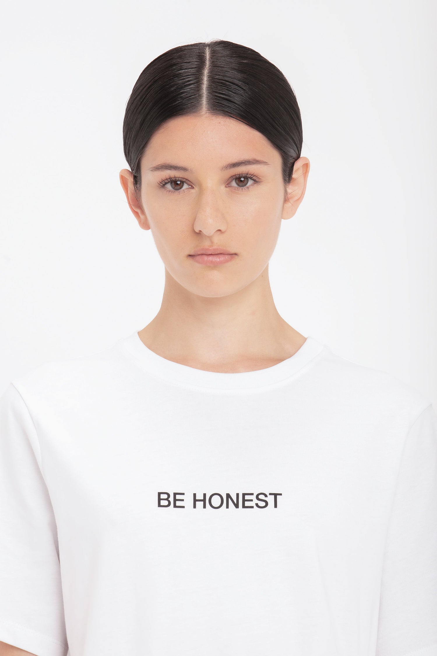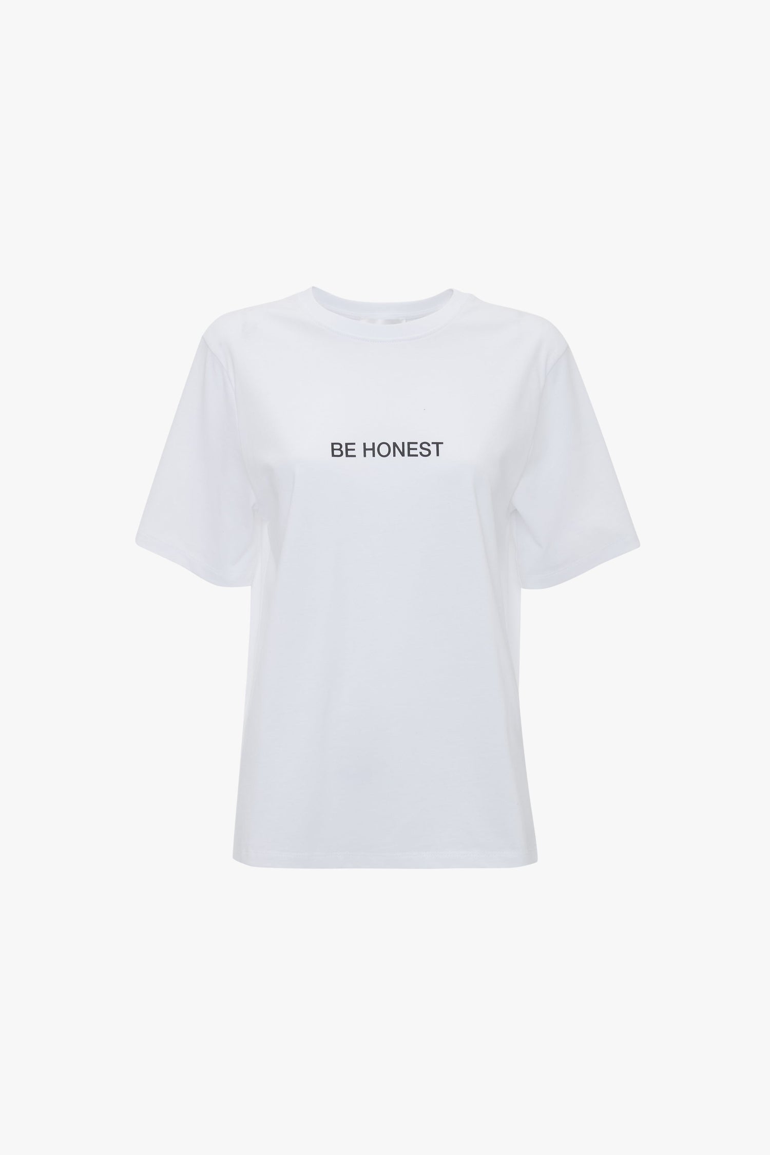 Slogan T-Shirts are a hallmark of the Victoria Beckham brand and reflect the house's tongue-in-cheek playfulness. With a classic Victoria Tee fit, the Be Honest T-Shirt has a relaxed but polished silhouette. Made from organic cotton, it has a tactile elevated feel.