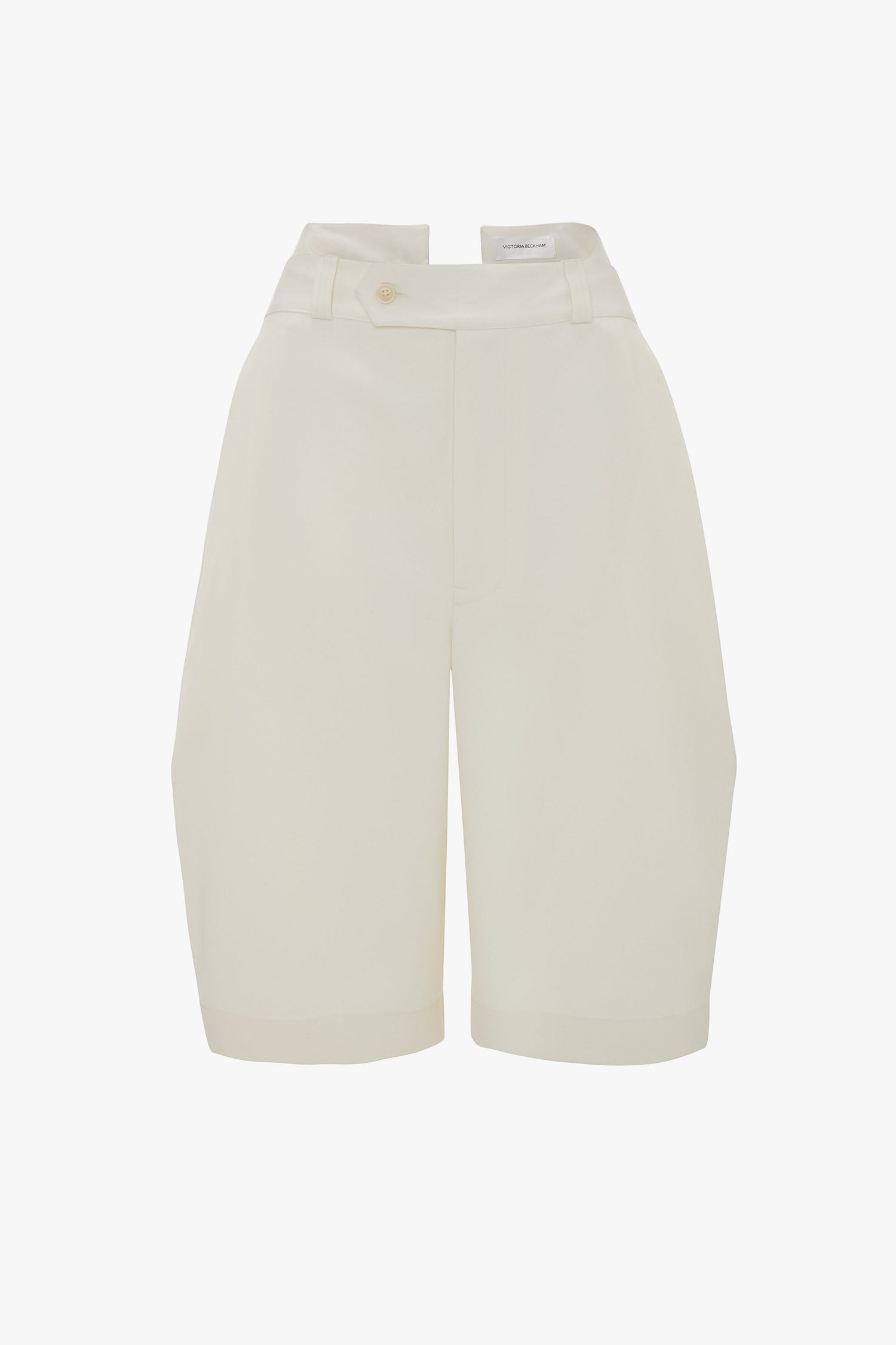 The Tab Detail Shorts reflect the house’s sophisticated blending of masculine and feminine. With a below-the-knee hemline and side pockets inserted into the seam, they have a contemporary boyish undertone. A high-rise waistline at the back and front pleats add femininity to the silhouette, while a front waistband tab with button fastening adds further shape. Crafted in a wool blend, they have an adjustable tab detail with contrast stitched button at the back.