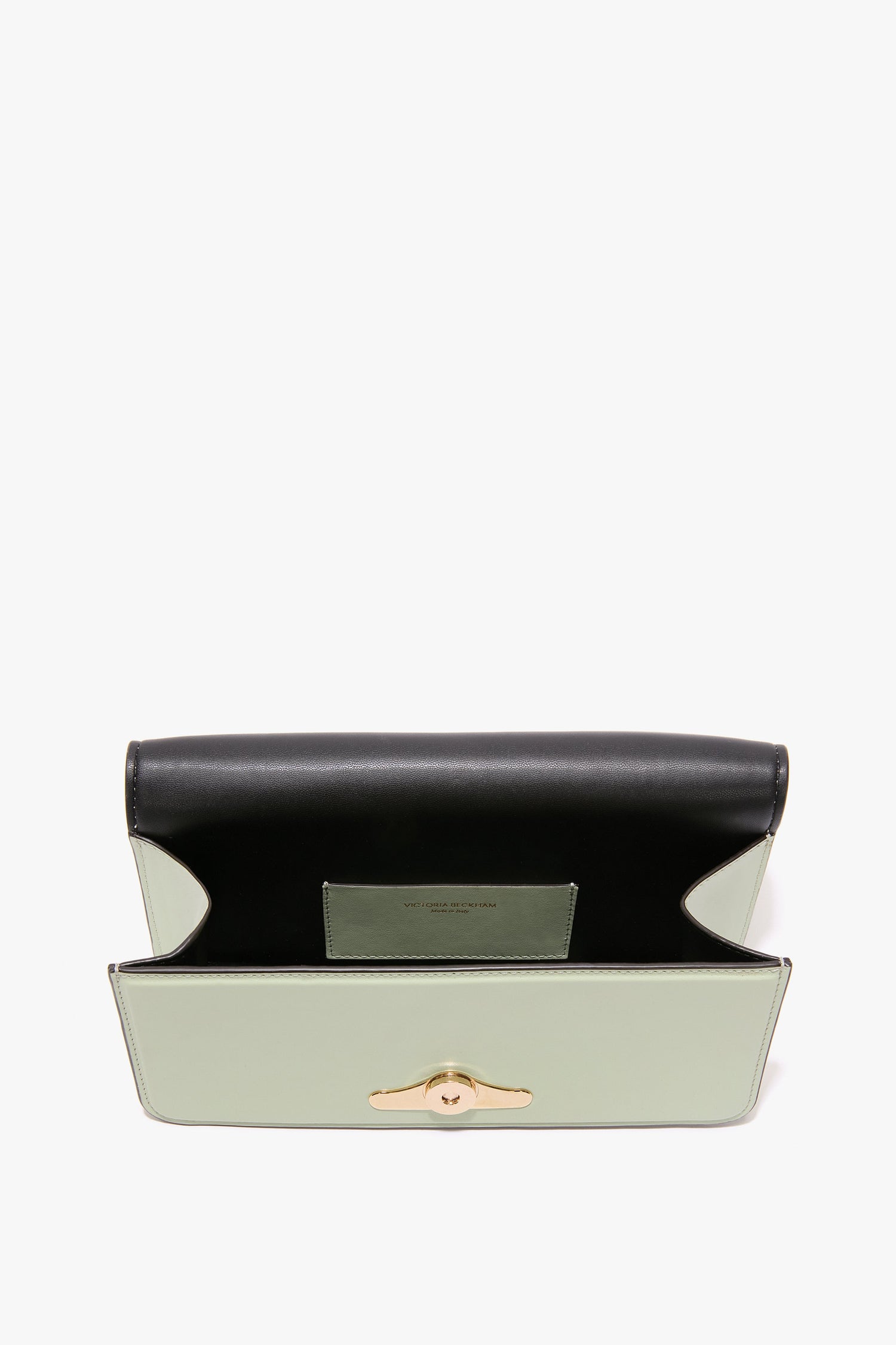 Embodying the house’s love of high glamour, the 202 Clutch Bag is a captivating addition to the house’s accessories edit. Beautifully crafted in Italy from distressed leather and presented in pale green, the 202 Clutch deftly borrows its talking points from traditional menswear codes. A leather-covered cufflink detail is the clutch’s distinctive calling card, while traditional hardware, including a Victoria Beckham logo and unique serial number, add the house’s signature polish. A single internal compartment and small internal flat leather pocket ensure secure storage.